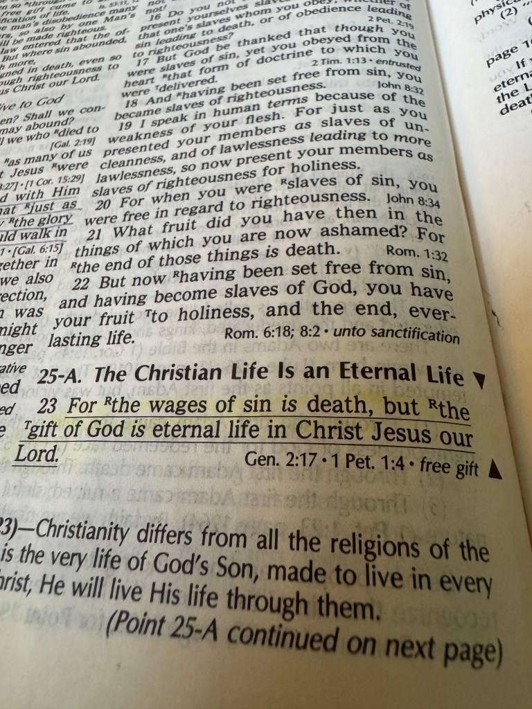 A verse that has powerfully changed many lives, Romans 6:23…………