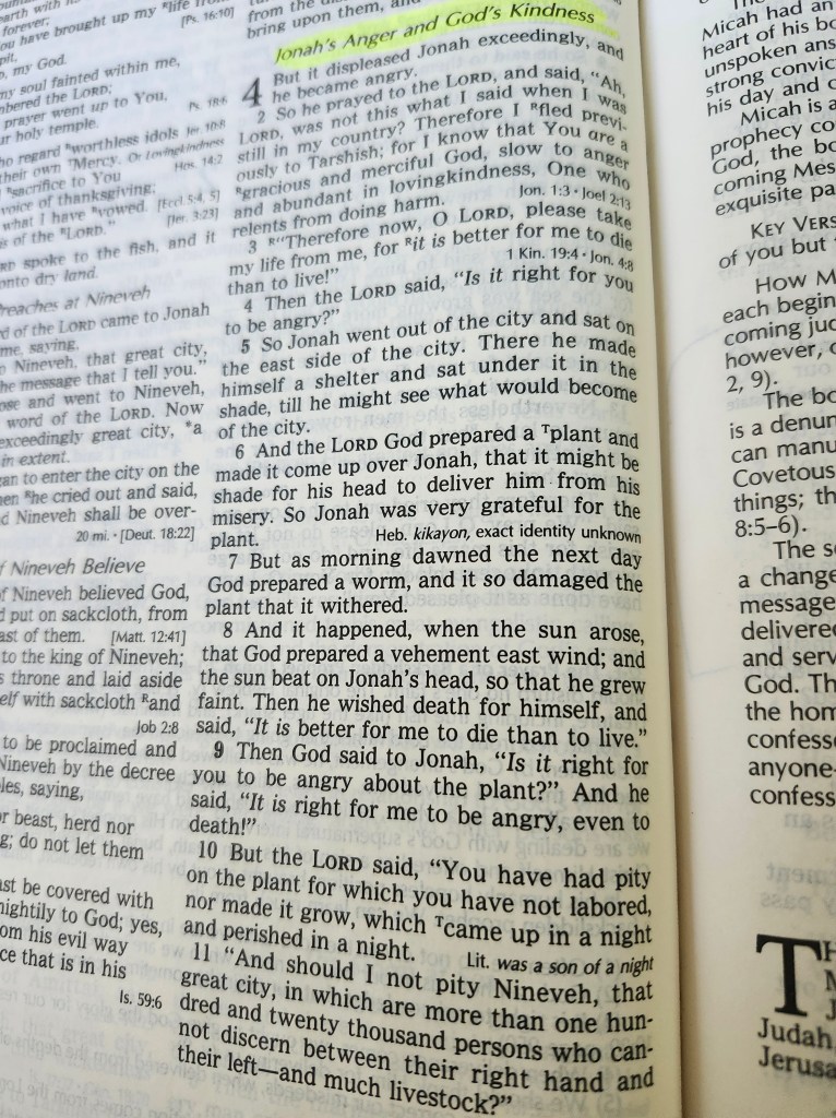 Jonah 4 is only 11 verses. Have you read it? It is a conversation between God and the prophet, very interesting………