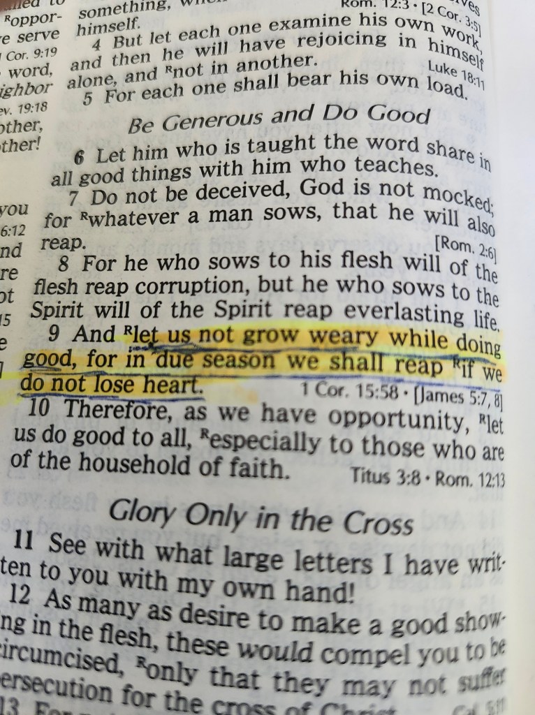 For those that are tired trying to do good, there is Galatians 6:9………..