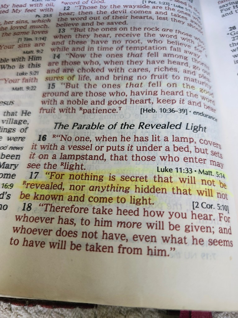In Luke 8:17 the LORD said all that is hidden, will be revealed, all will be found out…………