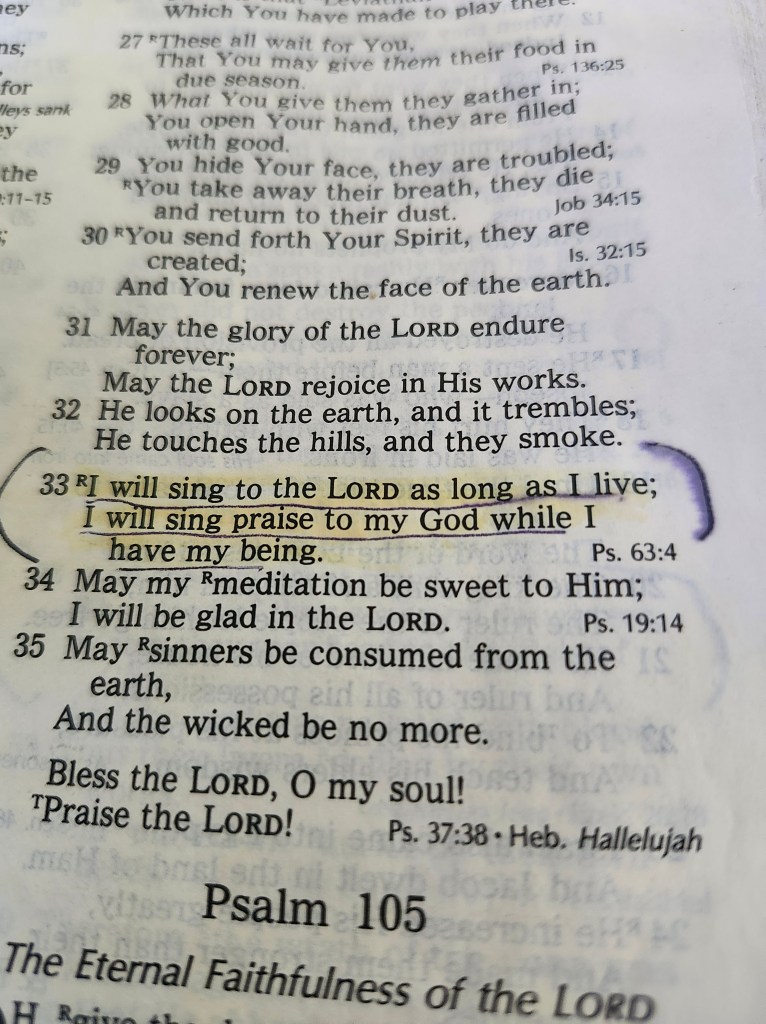 May we all do this even through pain and sorrow, Psalm 104:33……..