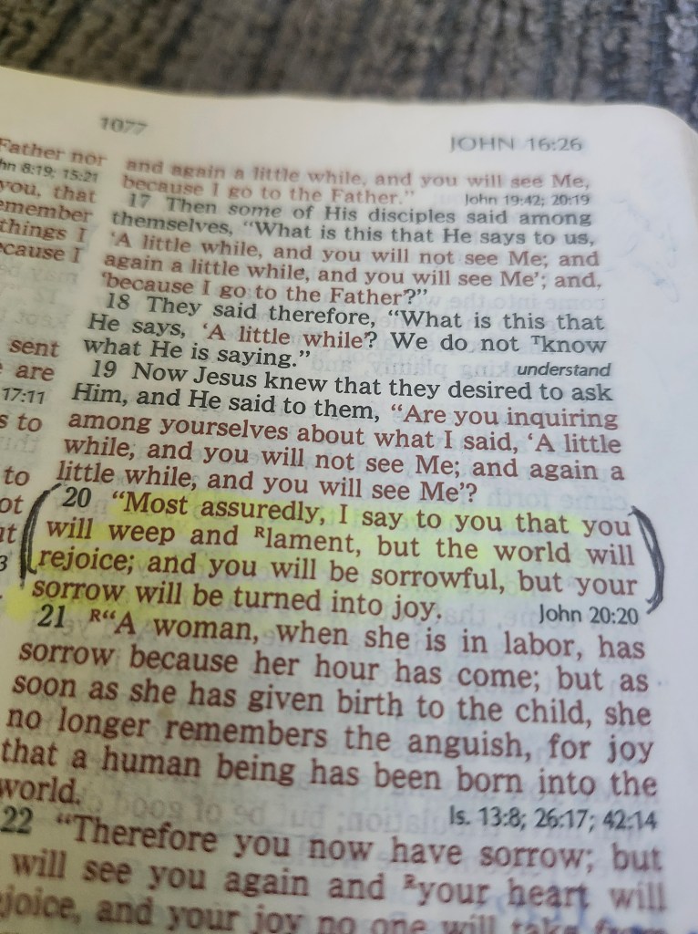 As read by Alexander Scourby, an amazing read. Also John 16:20, amazing words about sorrow turning into joy!!……..