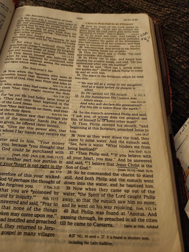 Acts 8:26-40 is a powerful event that if we listen and obey the LORD we see His power…..wow……