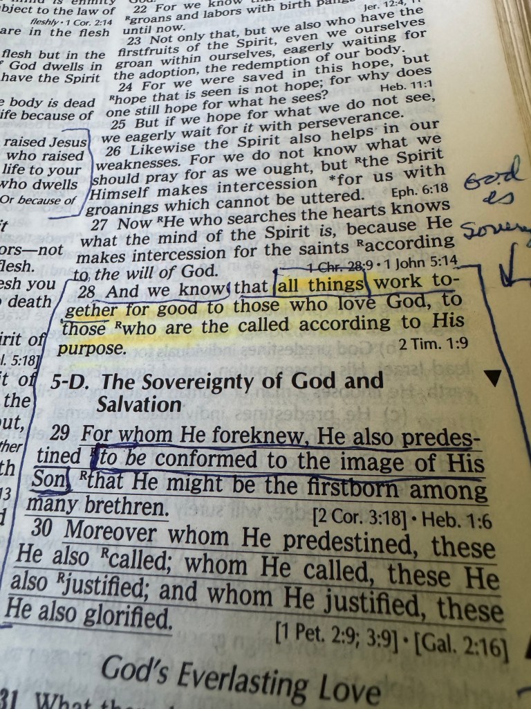 A verse that has helped many through very difficult circumstances, Romans 8:28………….