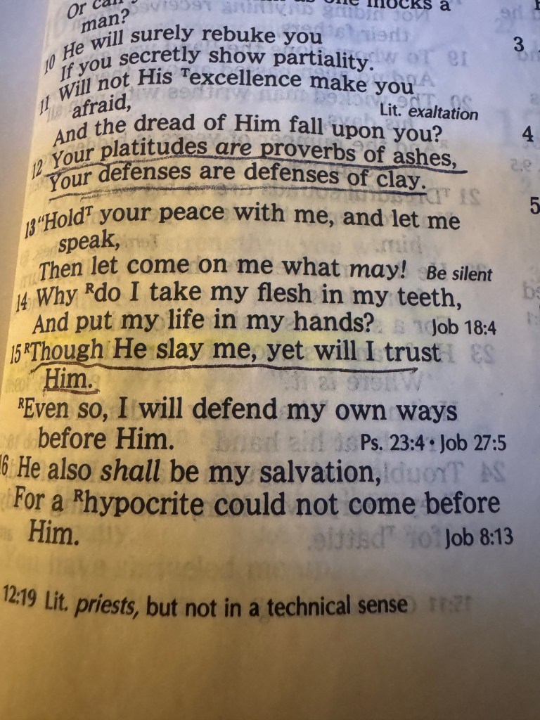 Can we, like Job say, verse 15 of chapter 13 or Psalm 9:10?……….