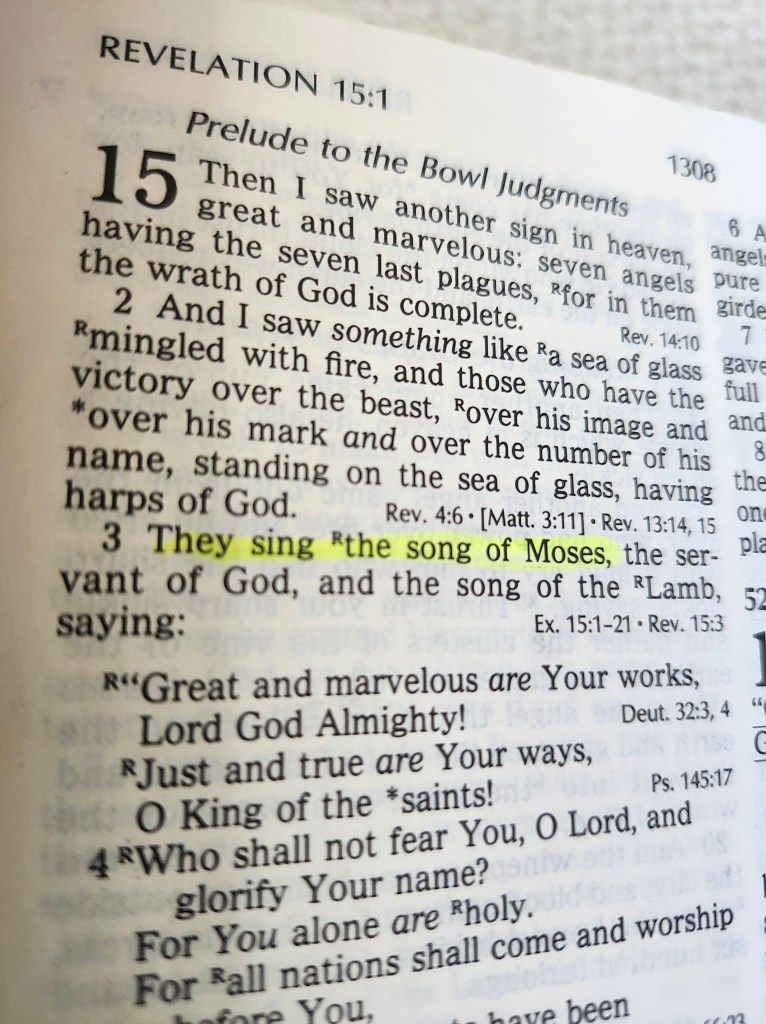 In our readings for today, wow!, we come to Revelation 15:3 speaking about the Song of Moses that we just read in Deuteronomy 32. All the Words of Scripture are as 2 Timothy 3:16-17 says…….