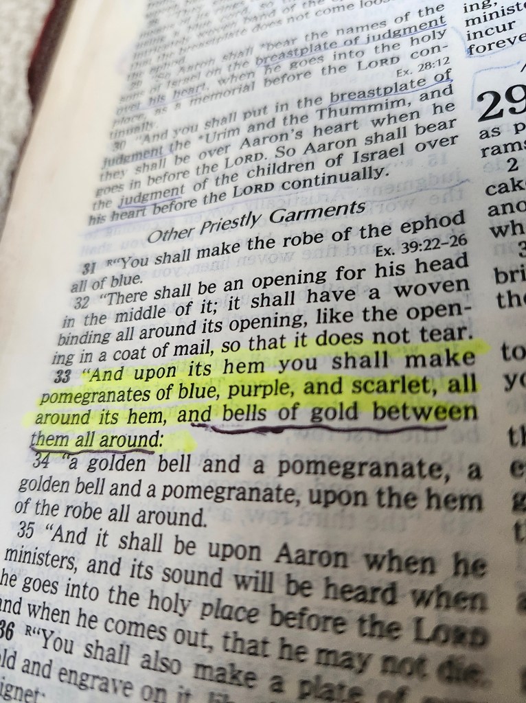 Exodus 28:33 tells of a small detail of a golden bell 🔔……….https://m.youtube.com/watch?v=ZrJl2ilVp-I