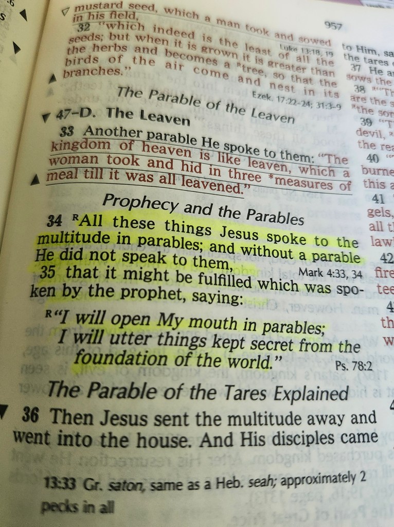 As the LORD was fulfilling Scripture as He was teaching the people, Matthew 13:34-35…….