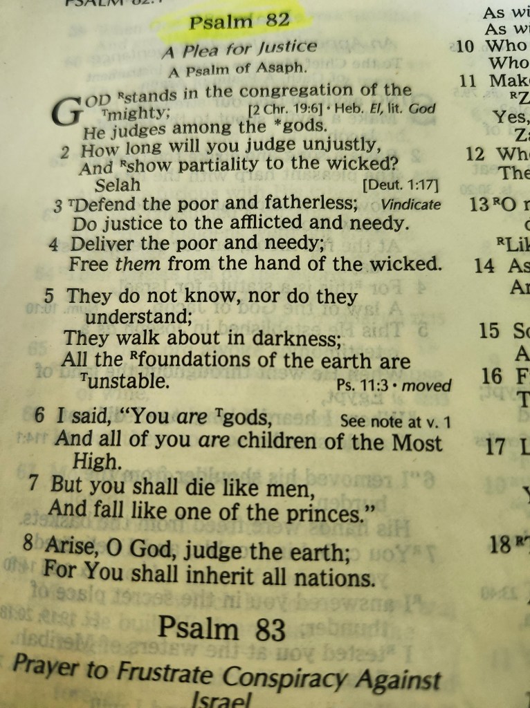 Psalm 82 is read every Tuesday and it is a glimpse into the heart of the LORD. He does not like dishonest scales……….