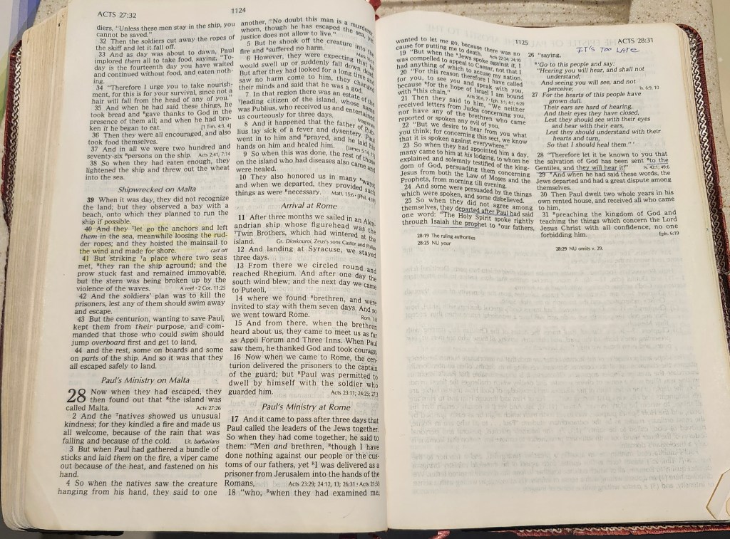 Today we come to the last chapter of Acts the end of Paul’s journey and an amazing read……
