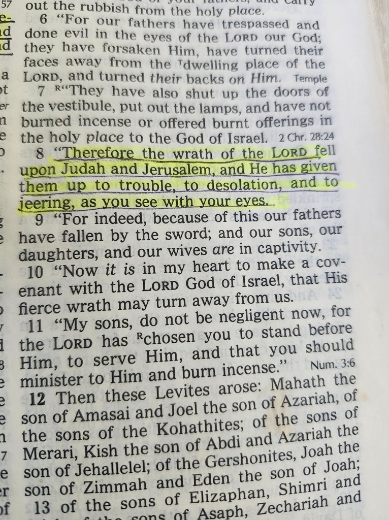 When we turn away from God, 2 Chronicles 29:8 comes upon us………